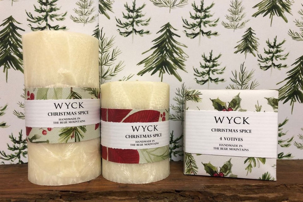 Like all our candles, WYCK Christmas Candles are made with natural plant wax and pure cotton wicks. The pillar candles are wrapped in festive papers, and the votives come in hand-folded boxes in an assortment of seasonal designs.